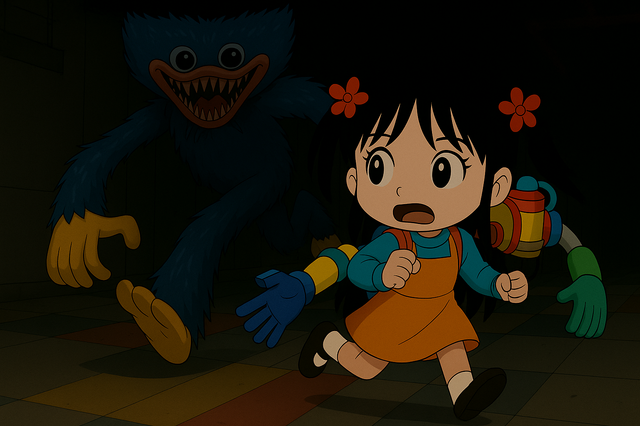 Poppy and Shurikino find themselves being chased through the vents by Playtime Co.'s most successful toy: Huggy Wuggy! Even Shurikino, Poppy's personal trainer, thinks that they are no match for this monstrous toy. So you better run faster Poppy. Huggy isn't gonna let you escape that easily!