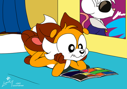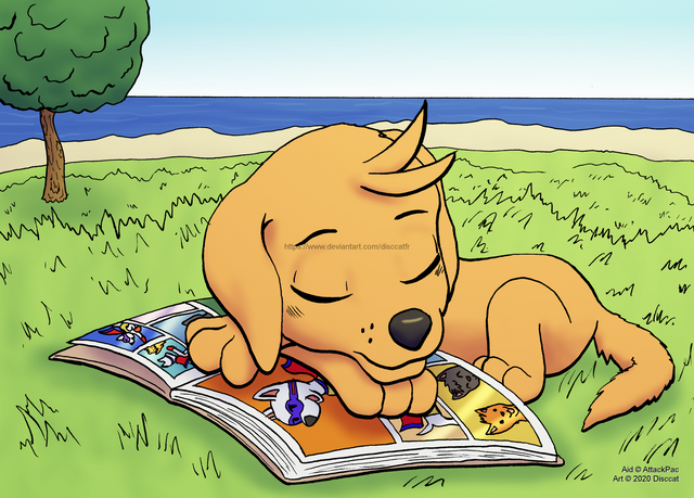 A wonderful commissioned art piece I got from my buddy .Aid was reading a comic book, but you know how sometimes you fall asleep while reading. That's what happened here. Xp But one thing's for sure, he looks cute when napping.