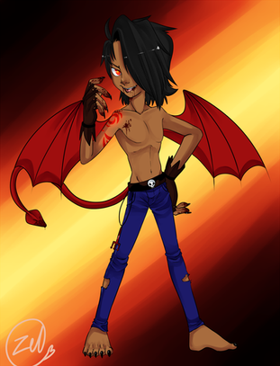 I found this show a few weeks ago, and I knew I'd be drawing fanart for it before long. The Tumblr dandom chose Demon!Dan over Mascot!Dan, so let me tell you a bit about it. In S3E3 "The Boss", Dan is given a choice to sacrifice Chris and become a full demon. Unfortunately we never get to see Dan as a demon, so I drew him myself while keeping as close to canon as possible. Even his shorts are from the reality TV episode!But really, I love Dan Vs. It's on the brink of being cancelled, so I really recommend you look it up and watch some episodes! They're all on youtube, but you didn't hear that from me~