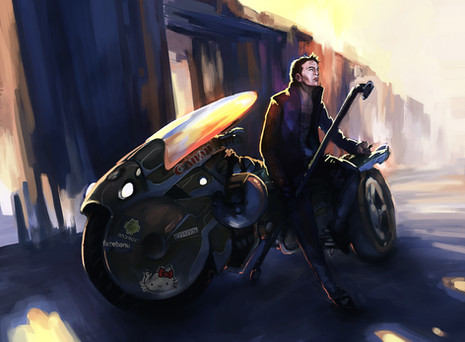 Great pose and angle too =] The bike looks like itβs just waiting to take off, and the rider is refreshingly normal in his stance. Haha Iβm so used to seeing original characters and anime that seeing a regular guy simply being cool in a drawing is unique.