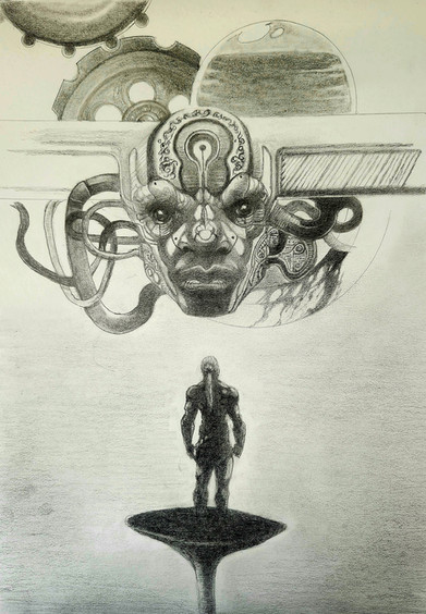 As a whole, I love the work and I think the robot is a sinister monster from a machine hell. Awesome, man