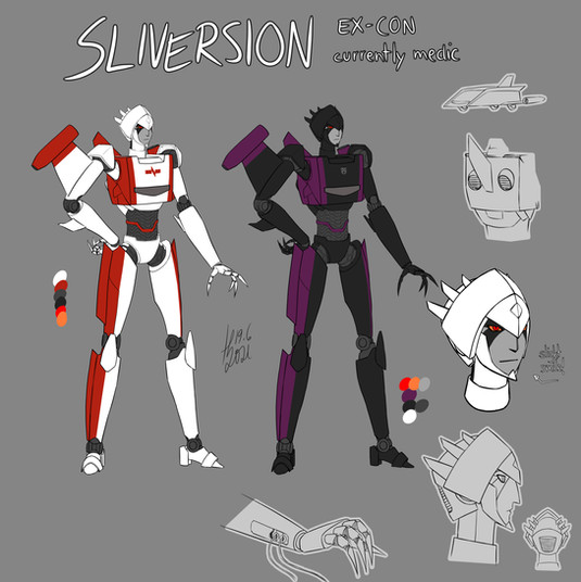 Revamped a two year old OC; Siphon. Once a Genericon, Siphon's spark felt something while on the battlefield. Something unique from their mold mates; joy.Related content