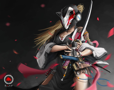 #sumi #cyborg #digitalpainting #fantasy #illustration #katana #mask #originalcharacter #samurai #slayer