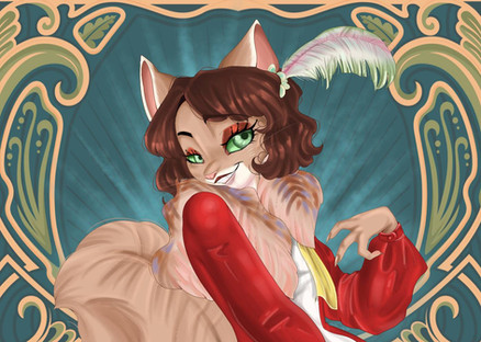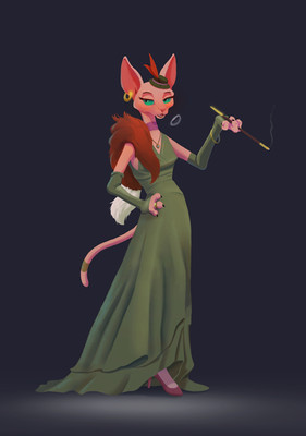 Fara Phoenix from the old Starfox series! A tough-looking woman in a fancy red/black dress with a classic Feather Boa in red!Hope you all like it!^^