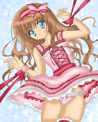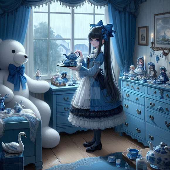 The poor loli fall down.I think that she need help,and her little bear,some care...