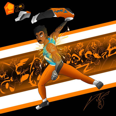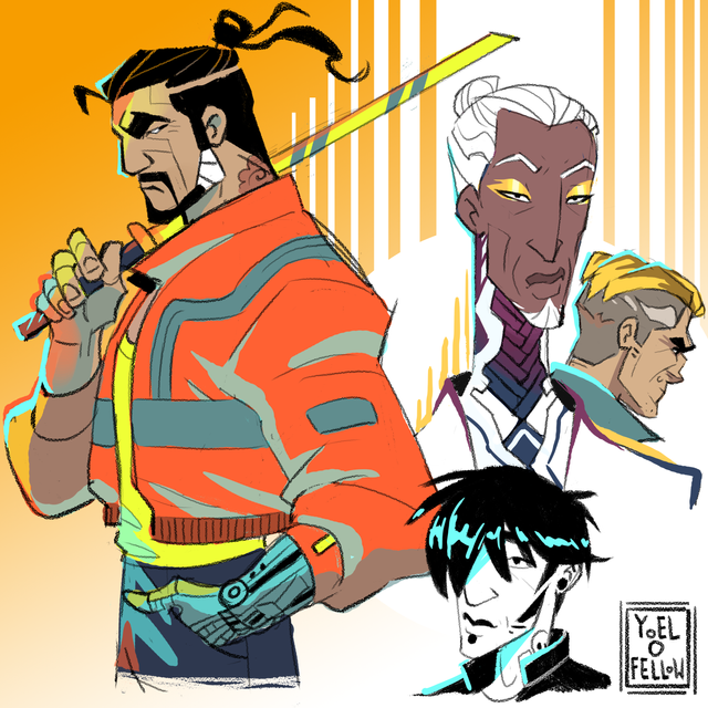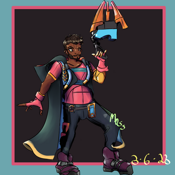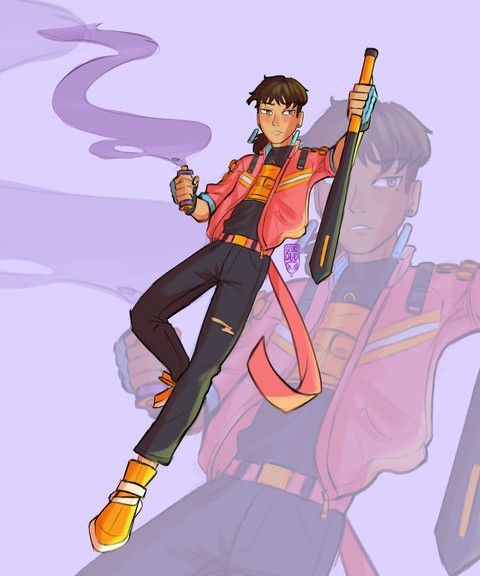 Easily one of my favorite character designs ever, Dee is the son of a detective and an engineer who is using his impromptu combination of these two disciples to engage in a deadly, impulsive manhunt with his disgraced father as the quarry! Those lucky enough to have worked with Dee along the way describe him as a "sentient lucky charm", whose allies are always "covered" (a running buzz word with him) when things heat up. Of course, he knows that luck is only part of it, that his capacity for planning and pacing paired with his experimental biotech are what guarantees his momentary allies safety. Only his circle, 4 deeply committed friends who share his vision for an end to a BARELY paused war among the shadows...