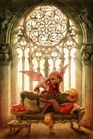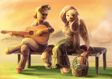 I'm not one to ship between the mane six, but this leaves me tempted. The coloring and shading as well as the posing all in this is very sweet and romantice <3 gives me the butterflies >u<