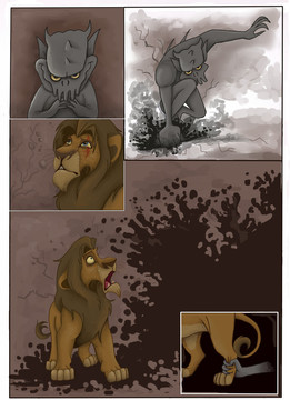 This picture, by an artist known by the name of Paso on the TLKFAA (she's not active anymore, but you can find her gallery here: fanart.lionking.org/Artists/Pa… You must probably have a FAA account though) had immediately struck me. This was it! This was how it would happen. It was such an intense picture! I wanted to tell its story...