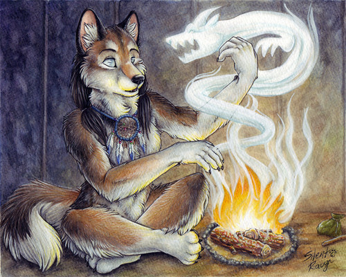 I like coyotes...and shells...and smoke patternsThe original is for SALE, check it out on Etsy!