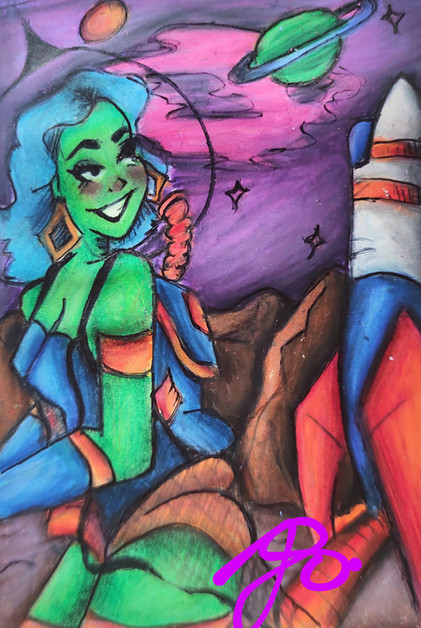 The stars are blazing like rebel diamonds cut out of the sun.Red Crayola colored pencil