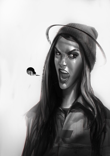 Love the little smoke graphic detail, and the texture of the hair!