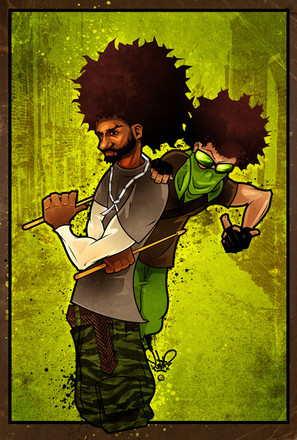This piece is so graphic, i love it, the colors are well chosen, the characters are awesome... PLUS, I feel nostagic of my trip to japan whenever I see kanji/kana...