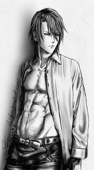 Whoo! It's done.Sebastian Michaelis, the demon butler in the Kuroshitsuji manga, in all his partially clothed glory.