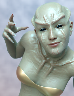 Another image of Delpyune, a fully original alien HD character for Genesis 8.1 Female.This from the AB Mixed Alien Poses for Genesis 8.1 Female that, with Delpyune HD, offers 60 highly dynamic poses for all typologies of renders.