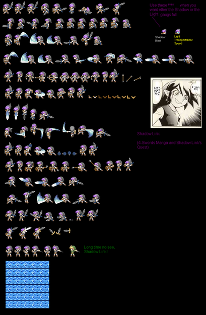 However, in foresight, the plan didn't work out so well, so I decided to scrap it. Dark Link was sticking out in my mind like the Link replica from that haunted Majora's Mask hoax, so I decided to do a sprite battle between Link and Dark Link - although I had to do some painstaking black/darkgrey recoloring on SemiJuggalo's Link sheet.