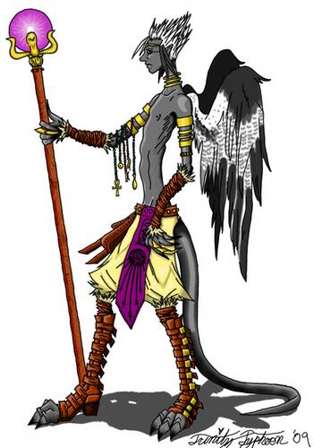 Wow... This is a very nice piece of work. I love the way the claws on the wings are, and the outfit is exceptionally cool. I love the style of shading, it's my favorite. Your a great artist, and I like your technique.