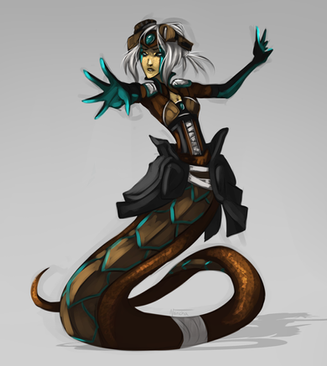 Did you base her snakey-parts off of Ball Pythons? AKA Royal Pythons?