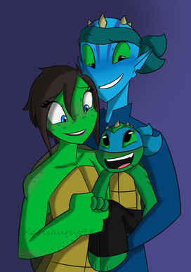 I've never drawn them together in family, so I wanted do itI didn't know if put chompy or Spike in the pic... I still feel sad for spike and chompy's mom.... But Lou is with patt... (The pet of Lucy)... it Just don't see very well :'u