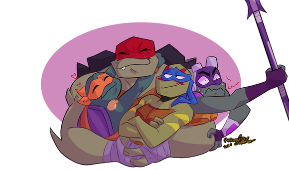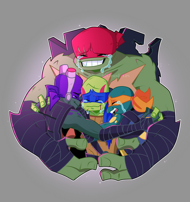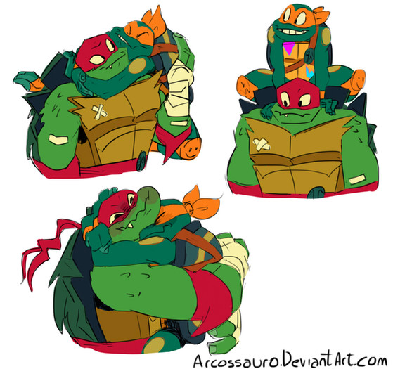 Idk!! I have been out on vacations (That's a lie) I've been on a sleep over that went out of control, all for the sake of making my friend watch rottmnt so we could watch the movie together, I stayed on her house for like 6 days but we actually managed to watch the whole show in 2-3 days... And i'm sorry but I am back on my tmnt phase, these little guys- yes especially Raph- have me crying all over the place, they're so cute and probably my fav version over the 2012 ones. So ofc I had to draw them!! Look at them!!! ahhh