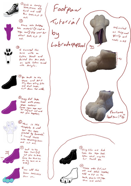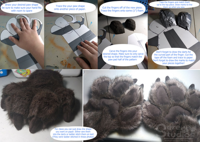 An easy step-by-step guide to making fursuit handpaws.This guide is pretty basic, complete with a generic 5-fingered character.