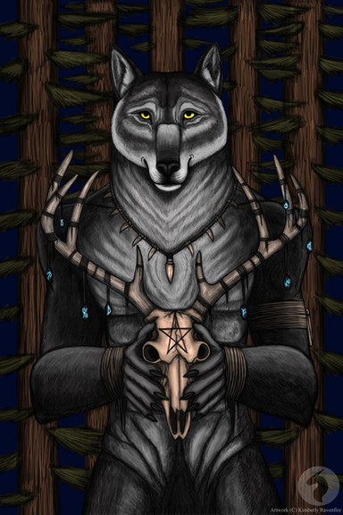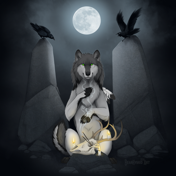 #anthro #candles #coyote #dark #forest #furry #ravens #skull