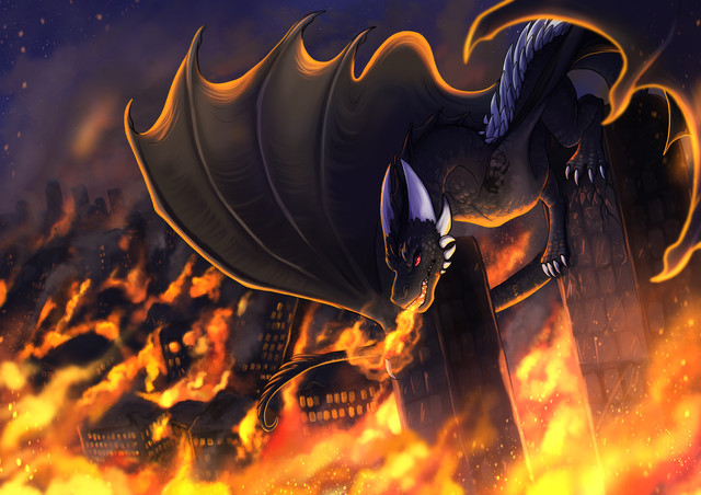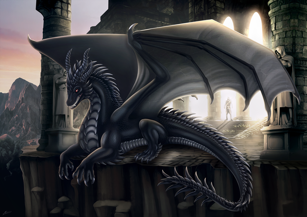 #blackdragon #commission #dragon #ruins #songinspired #temple #fire #siranor