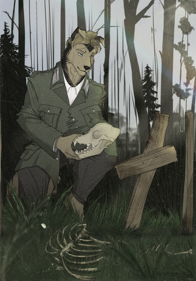 #anthro #burning #commission #field #furry #grave #mines #past #soldier #war #wolf #pyndan #fire