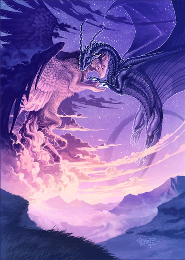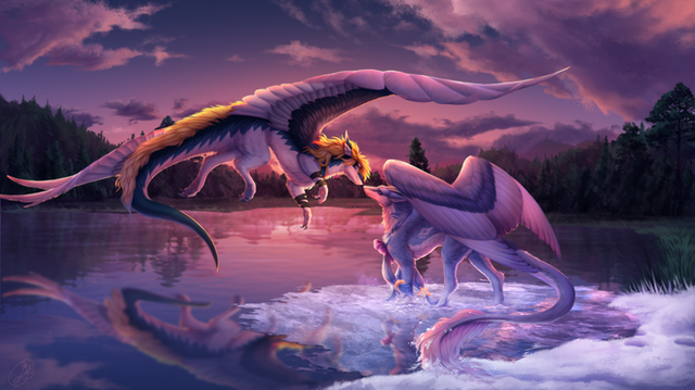 #cat #commission #detailed #dragon #feline #landscape #purple #art