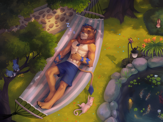 #anthro #birds #commission #furry #lion #window #winter #ych #art