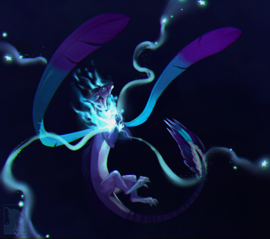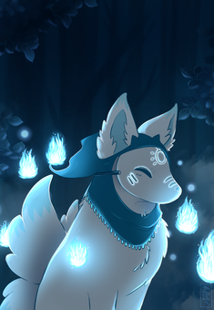 I love, love, love the dynamism to this piece! The slight billows and glows of the flames, the drifting of the particles, the flow of the scarf--everything conveys motion effortlessly! And don't even get me started about the other aspects! The gradient in the background? Perfect. The lighting cast upon the silhouette? Also perfect. Even the tiny swirls upon the scarf? Absolutely mystifying! The slight cropping at the corners of the painting to offer a more unique perspective? Yeah, umm...too cool for me!