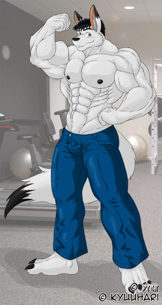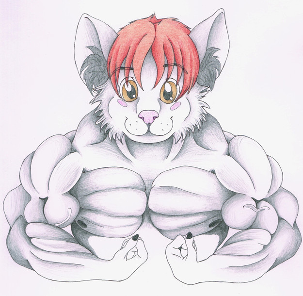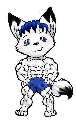 This is a request I did for Demian-Jason-Darkfox; [link] .I drew his arctic fox fursona; DJ as a pup, but still with all his impressive muscles. Little DJ had had enough of bullies picking on him at school and while trying to find a solution, discovered that he has advanced genetics which enables him to build muscle really fast and through hard work and determination he built up his body to what you see now, he now being 10 years old. Not only have the bullies now stopped picking on him but they somewhat envy him! They had better be nice to him from now on.