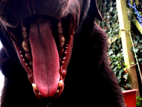 my dog haydes licking her lips, quite possibly hunting for squirrelsRelated content