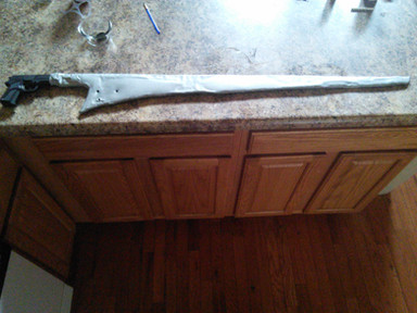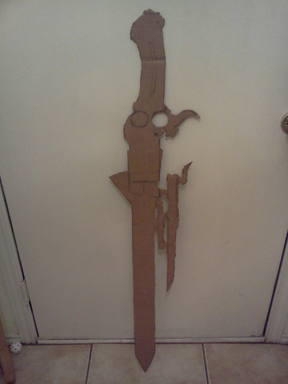 cardboard used for base, tape for color and holdin it all together, and though u can't see it, i used a binder ring for the triggerbecause i didn't want it to look sloppy like my sword project thing did i didn't try adding any detail