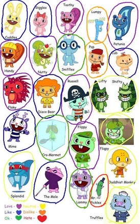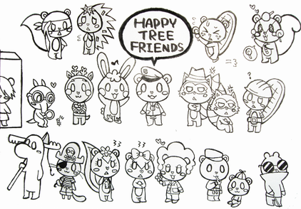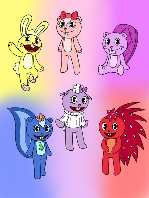 Since I have started to love this series, I just had to draw everybody! (Except Splendont and Buddhist Monkey.)I'm still practicing drawing anthro characters, and especially the HTF characters, since drawing both is new for me. So I will improve at some point just as long as I keep practicing! And I have realized that in my artwork, the characters I draw have same face syndrome. I'm planning on working on that. Even though my art is not perfect, I still love how they all turned out in this particular picture!