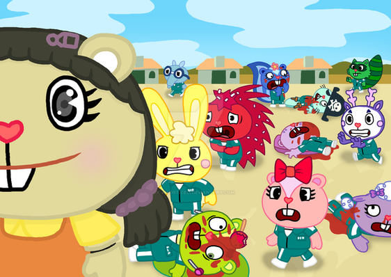The characters in this art are from the series, 'Happy Tree Friends.' HTF was created by Aubrey Ankrum, and it's run by Mondo Media.