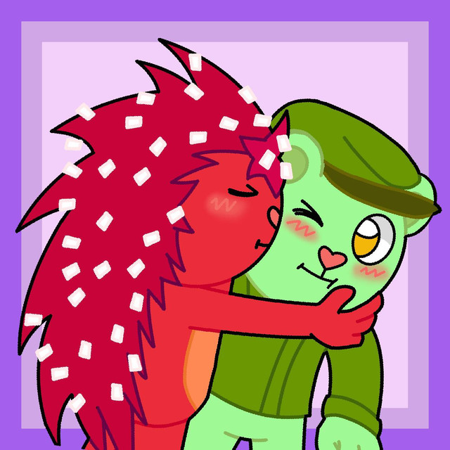 Flaky knows how to turn Flippy back to normal!I like to imagine that when Flippy turns, Flaky's kisses turns him back to normal.