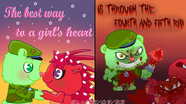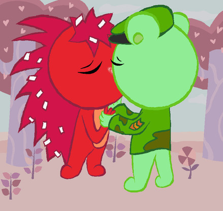 #blush #blushing #cute #evil #flippy #happytreefriends #htf #kiss #shipping #flippyxflaky #fliqpy