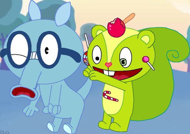 The characters in this art is from the series, 'Happy Tree Friends.' HTF was created by Aubrey Ankrum, and it's run by Mondo Media.