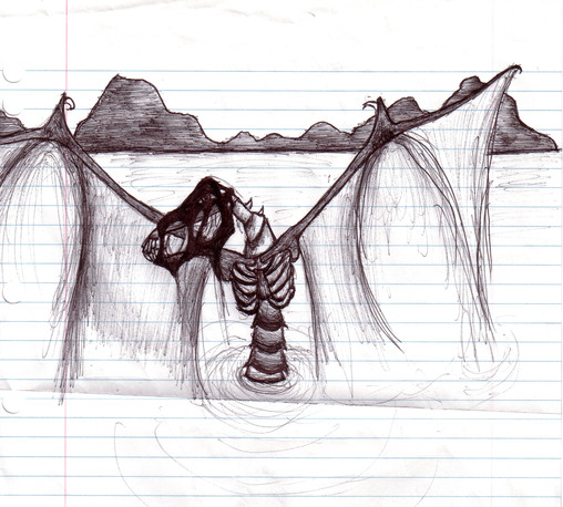 Playing with colour to draw attention to fancy bits in a really obvious way. Ink, charcoal and coloured pencils on paper.Related content