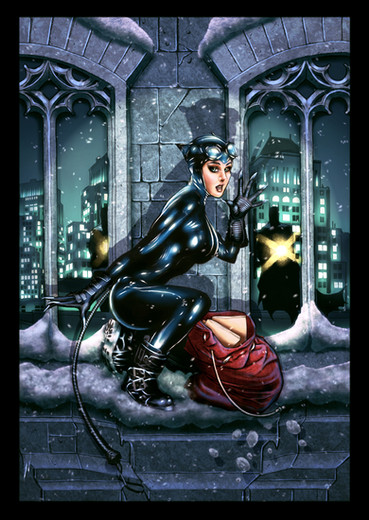 The thing I feel needs some work on the one to the left is readability. Sure, it has a lot more details, but it's more difficult to make out where the background ends and where Batman's head and cape begins. The rocks in the background are a bit overdetailed and therefore confusing to the eye. Catwoman and Albert are also much more readable in the image to the right. But again, we're comparing pencils with inks. I can only compare the two images on a first impact basis.