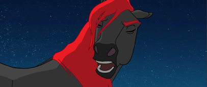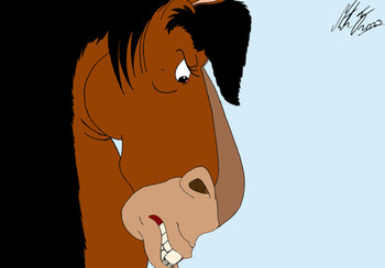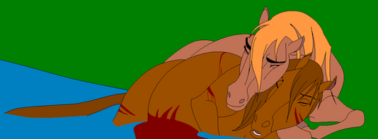 This scene is where Dell's horse Clyde and Sentry get into a fight.