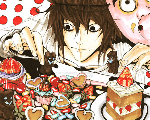 *gasp* Sheesh L, did Wammy teach you no manners? I better not find any of that in my keyboard!DeathNote Β© Tsugumi Oba & Takeshi Obata