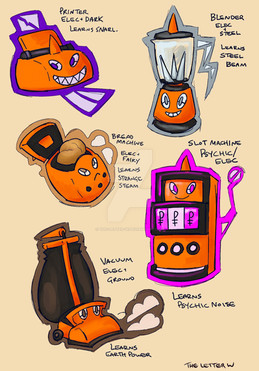 I'm doing some rough sketches of a pokedex inspired (heavily) by Pokemon and Cassette Beasts etc. Excuse the simplistic design choices