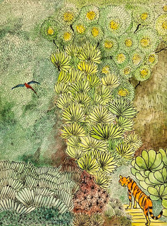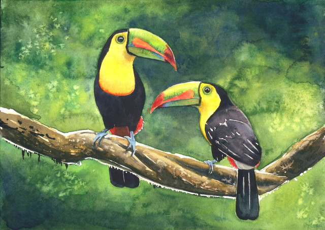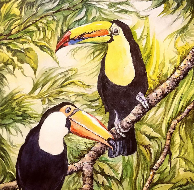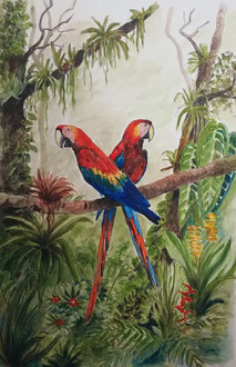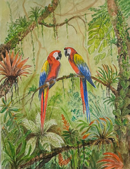 #forest #jungle #parrots #trees #aquarellepainting