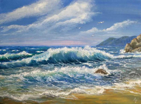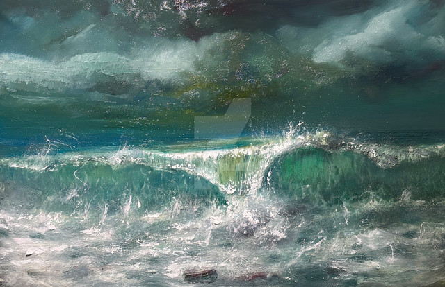 #sea #cliffs #clouds #oilpainting #storm #wave