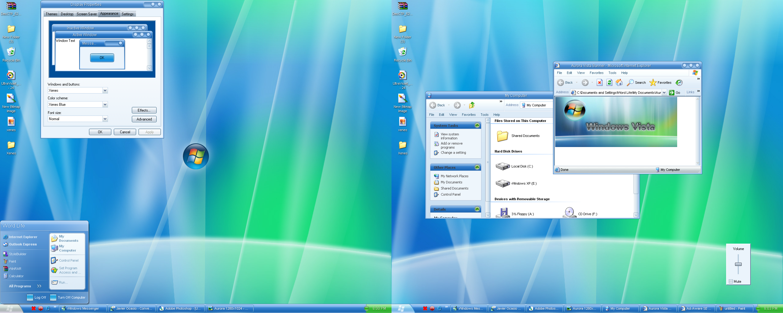 looks way too much like =-kol 's Thallos VS to get any credit for originality from me. also, the windows logo in the start button looks a bit too wide, and is too close to the word 'Begin' IMO... and the default-type fonts in the taskbar buttons look very out of place. A little more work, and a bit more creativity might help with your next VS.