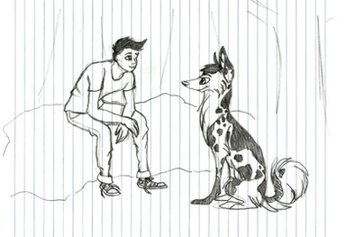 I picked Kid to do as my character. It took me a while to figure out what song to do for him, but throughout the comic you can tell that one of the main themes of the story (or at least his personal story) is guilt and regret. He is tired of hurting everyone around him and tries to fix himself over and over again only to fail. The actual art is a bit conceptual. The top is Kid trying to be the serious and a good leader he so desperately wants to be for his "pack". Kid seems to be innocent and not all there throughout the story, but it seems to me that he is just covering up his actual feelings of guilt and fear for harming others and those he considers his family. The bottom is a true representation of his feelings.