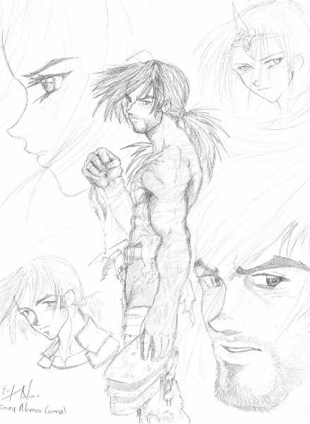 its not finished yet, this is only Cliven, i have already submit the preliminary sketch of the entire Draw, still i hace to color the Background and other charactersim still trying learn how to use Photoshop, so dont be so Crueeel with me Y_Y, i havent had any class of Digital Paint or something ;_;...