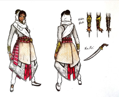 Bio: Apsarini was born in the middle of a dirty Batavia slum to two Assassin parents who were descended from Arab immigrants. She never got a chance to know these parents, however, as they were brutally murdered by Templars when she was barely a year old. She was left to be raised by her older brother, Jaga, who grew quite overprotective after the loss of their parents. Apsarini grew up watching the politics of her homeland get bent and warped with Dutch intervention, and always swore to free the islands from their colonial regime. Her fellow Assassins were not as eager as she was however, because they were still desperately trying to recover from the purge led by the Templars after the VOC was dissolved in 1800 and the Dutch East Indies was formed in 1816. Many of the Indonesian Assassins were paranoid of stepping out of the shadows, including Apsarini’s brother, and it often led to some serious arguments between her and the Brotherhood.