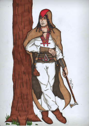 Her luck would run out in 10 BC, when a group of armed soldiers came into her home and arrested her father. Scared and confused, she ran away and hid with her mother until later that night. She snuck into the prison in which her father was being held, and he explained to her that there was a major conspiracy afoot. He told her that he wasn't all he appeared to be, that he was a member of an ancient Brotherhood called the Liberalis Circulum (known today as the Assassins) and that in 45 BC, he was one of the senators that helped assassinate Julius Caesar, as the consul had many ties to the Liberalis Circulum’s mortal enemies, the Order of Ancients (known today as the Templars). He told Aquila that she needed to escape and find his robes and weapons, and to seek out the Brotherhood’s hideout. She begged him to let her help, but he insisted that there was no time, that his life meant nothing compared to the liberty of the Roman people. Aquila, eyes full of tears, rushed back home and did as her father asked. Her father was executed the following morning.